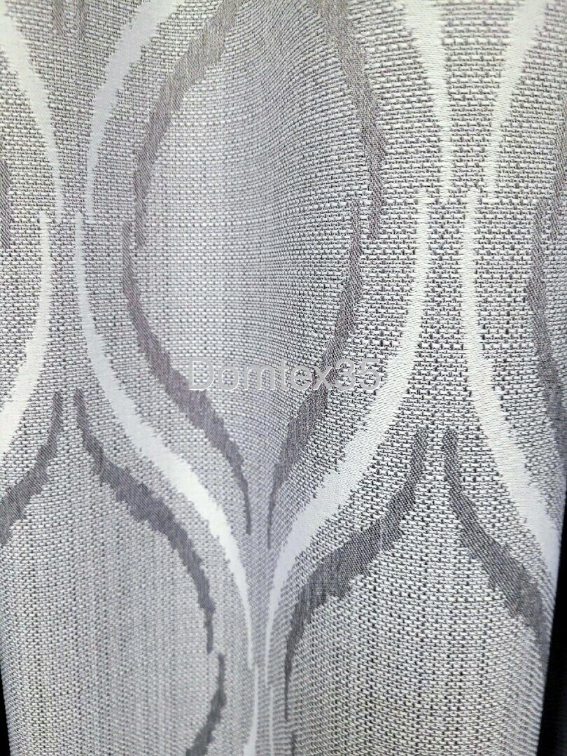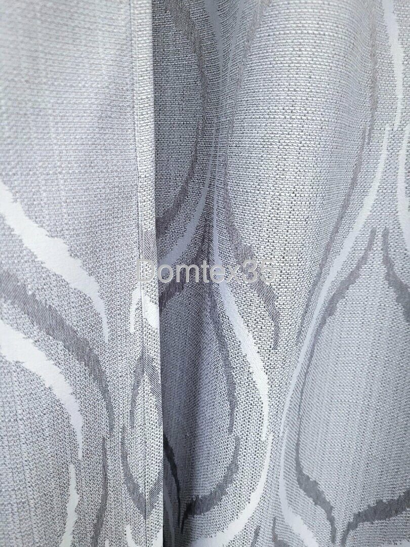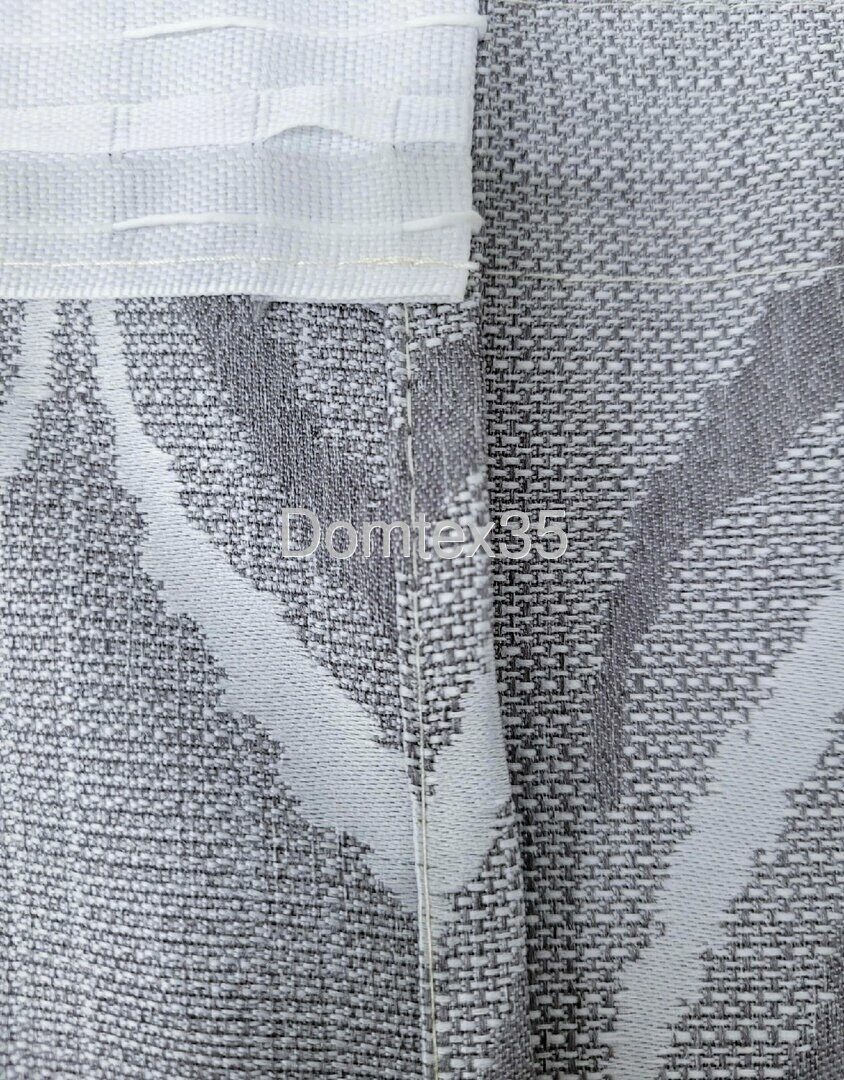 Шторы изготовлены из крупноузорчатой портьерной ткани простого переплетения - жаккард. Ткань жаккард относительно легкая и мягкая, приятная на ощупь, красиво драпируется и хорошо держит форму.