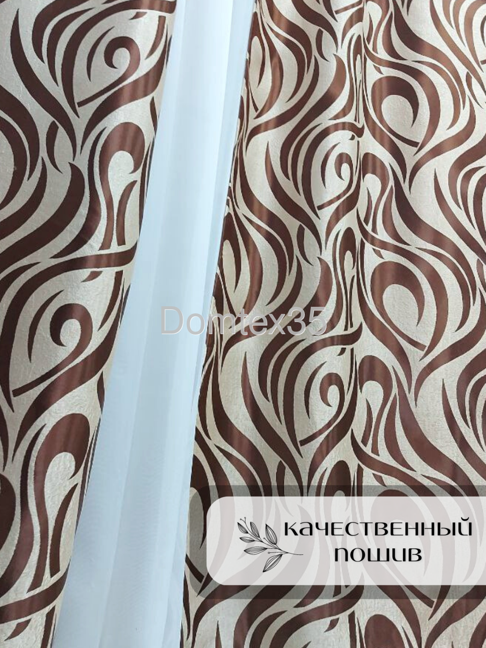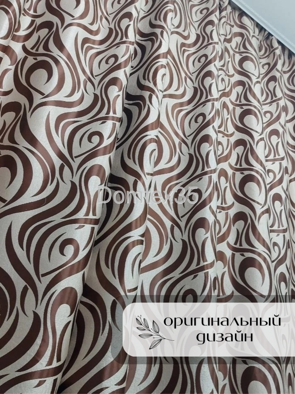 Комплект штор из жаккардовой ткани блэкаут высокого качества. На ткани плотный жаккардовый рисунок, блеск которому придают включения атласной нити.