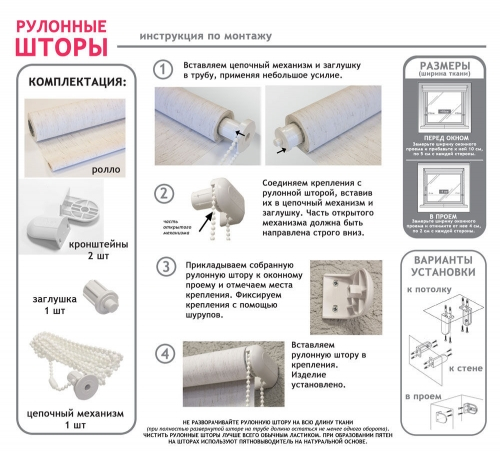 ✅ Миниролло (37-115см) крепятся без сверления. Монтажный комплект идет в комплекте: крепления без сверления: для открывающихся створок - при помощи клипс; для глухих - на 2-ий скотч. И тот и другой вид идет в комплекте ко всем мин