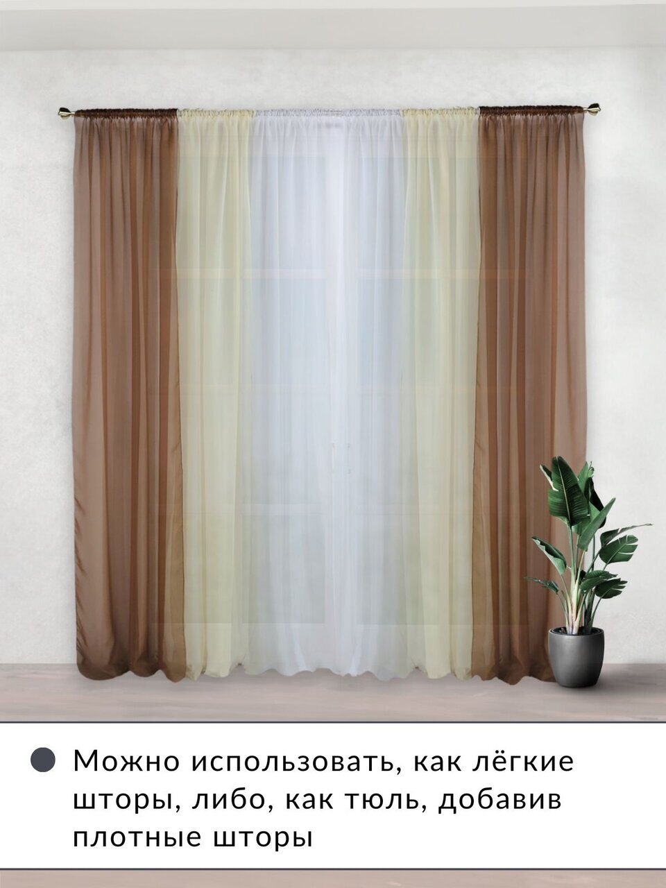 Комплект для зала из мягкой однотонной вуали, скомбинированный из трех цветов.