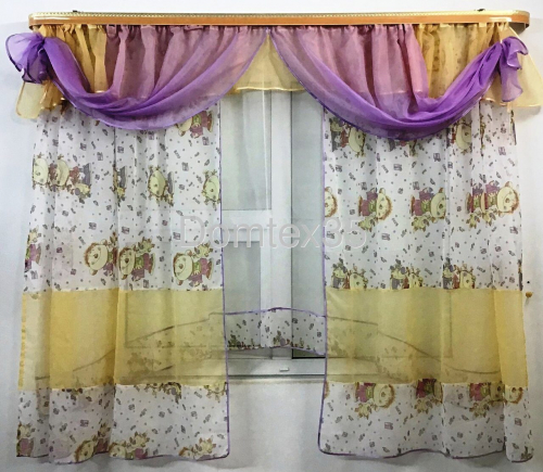 Комплект для зала из мягкой однотонной вуали, скомбинированный из трех цветов.
