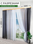 Шторы для комнаты комплект тюль вуаль "Радуга" черный/молочный