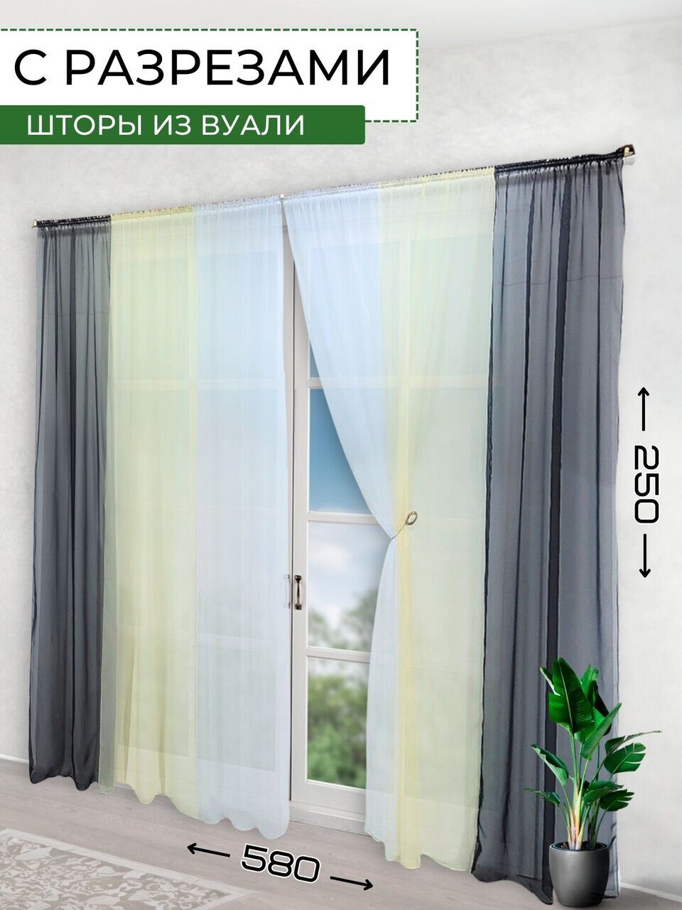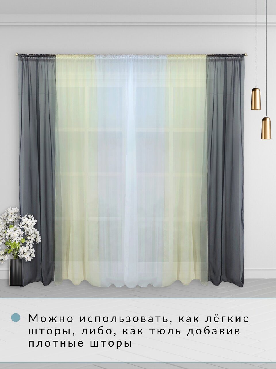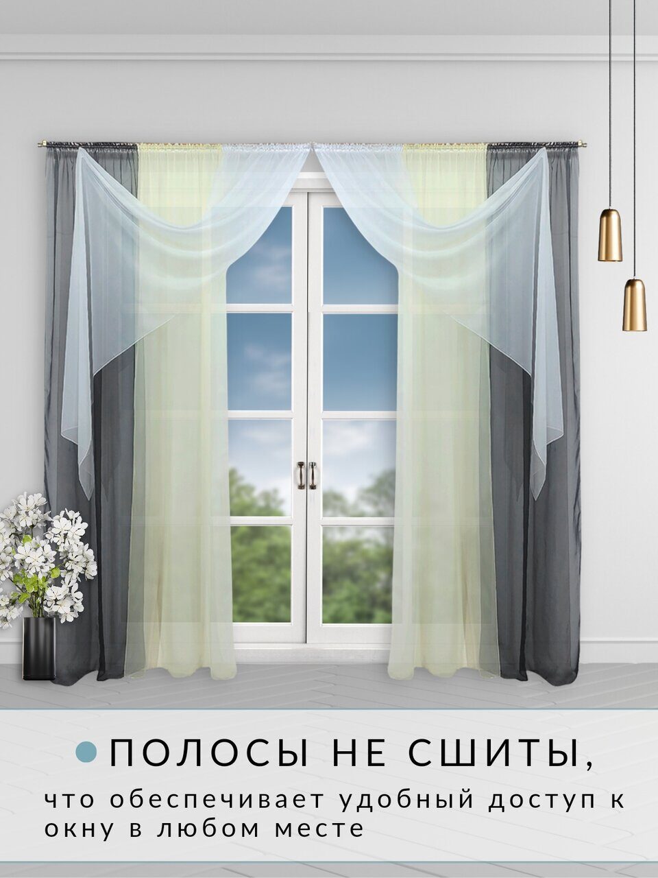 Шторы для комнаты комплект тюль вуаль "Радуга" черный/молочный