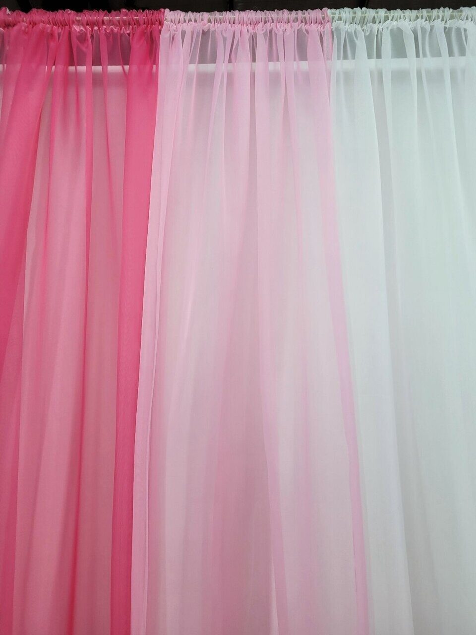 Шторы для комнаты комплект тюль вуаль "Радуга" фуксия/розовый
