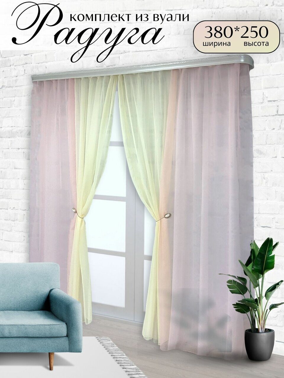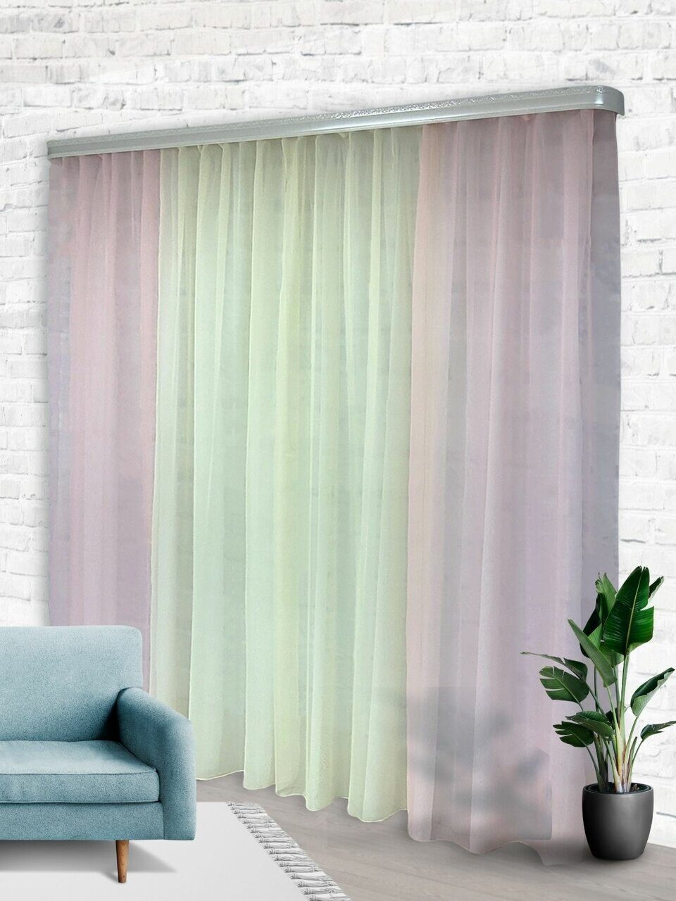 Комплект для зала из мягкой однотонной вуали, скомбинированный из трех цветов.