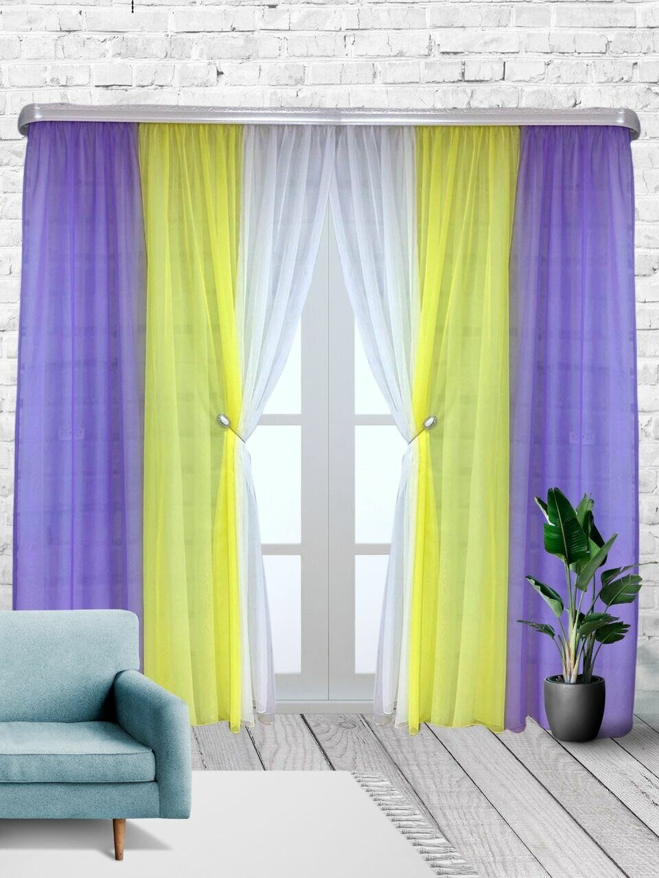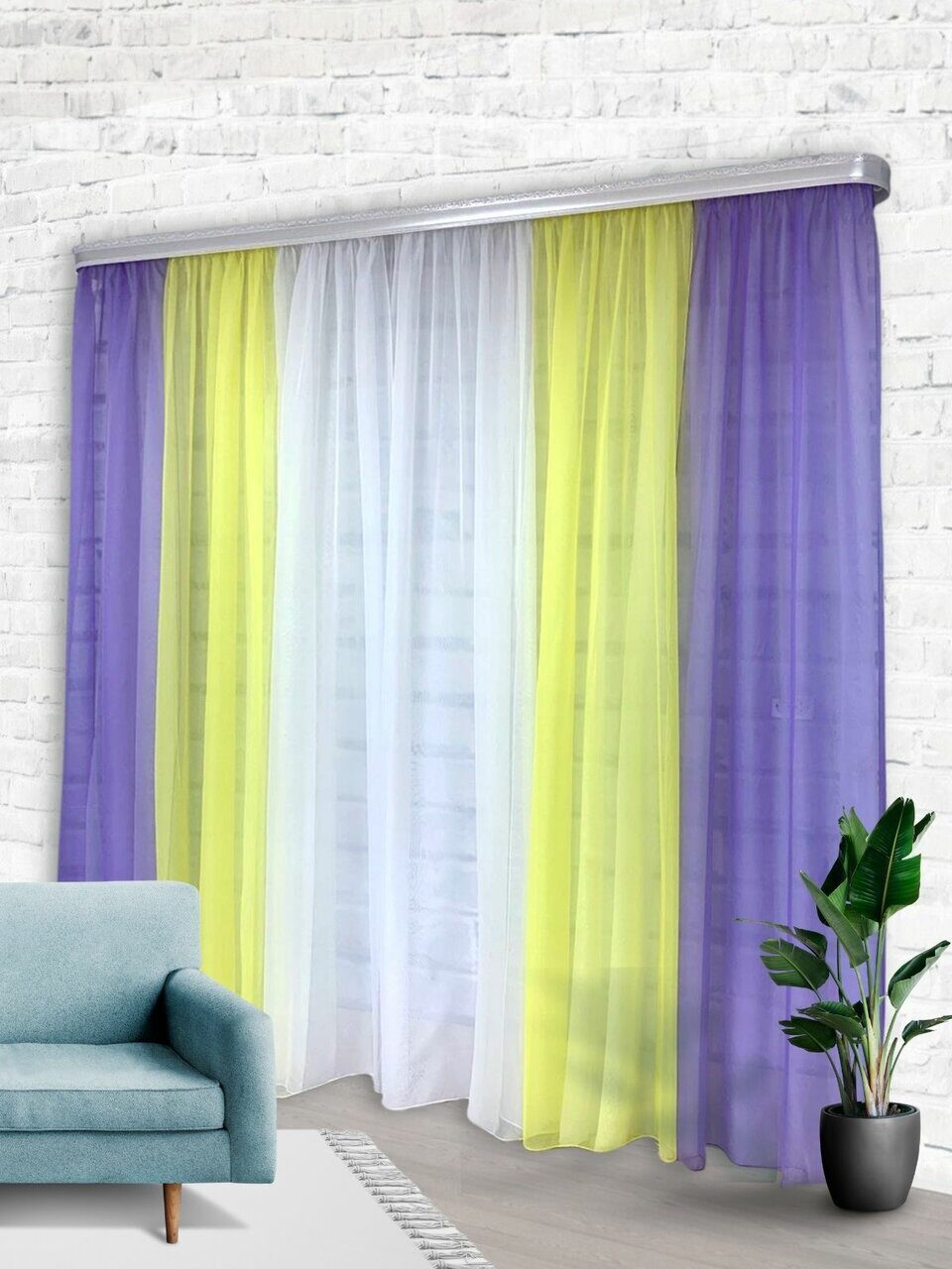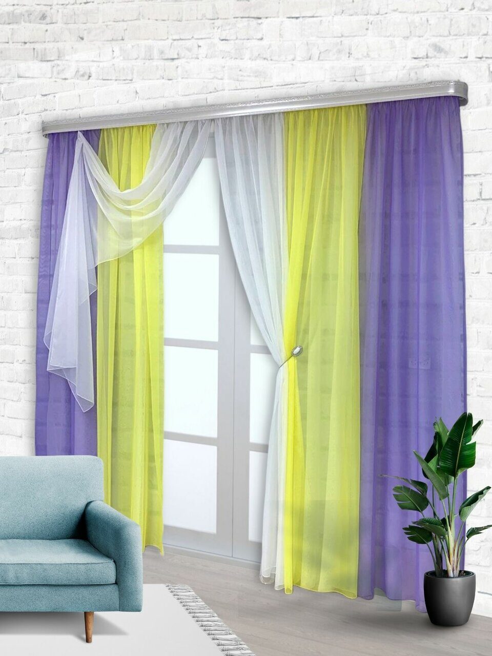 Комплект для зала из мягкой однотонной вуали, скомбинированный из трех цветов.