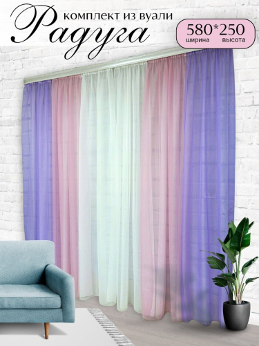 Шторы для комнаты комплект тюль вуаль "Радуга" сиреневый/розовый
