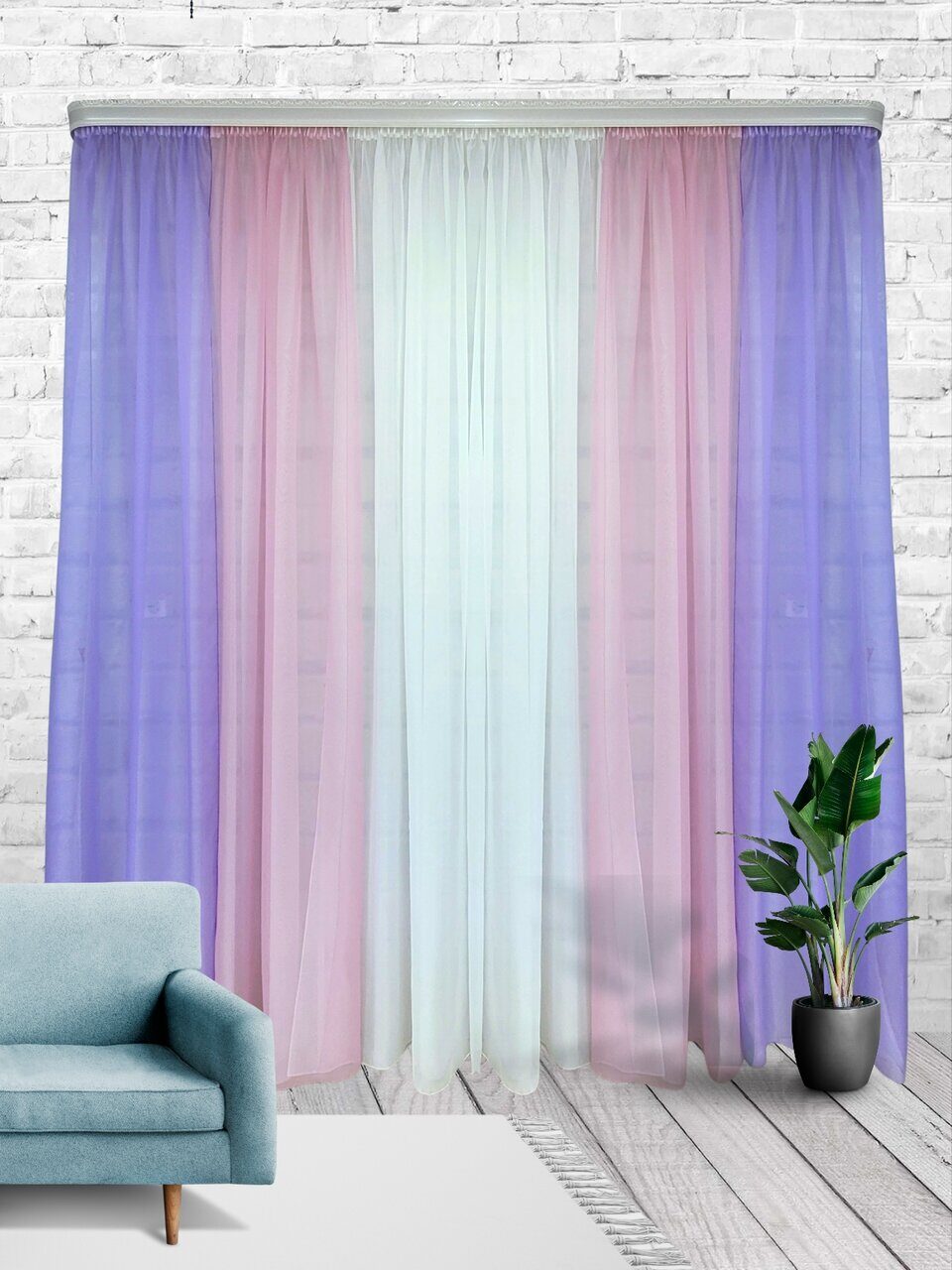 Комплект для зала из мягкой однотонной вуали, скомбинированный из трех цветов.