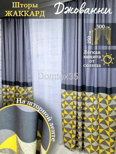 Комплект штор "Джованни" выполнен из облегченного жаккарда, легкая, но в тоже время очень прочная, приятная на ощупь портьерная ткань, имеющая матовую текстуру.