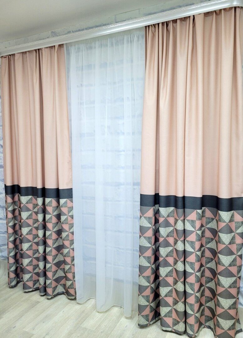 Сочетание однотонного полотна и геометрического рисунка - стильное решение для современного интерьера!