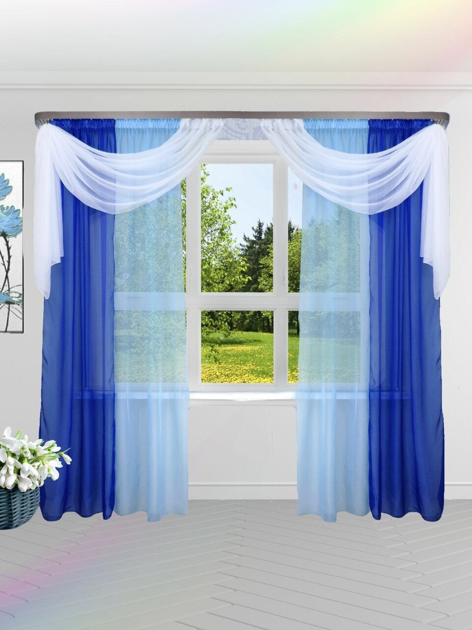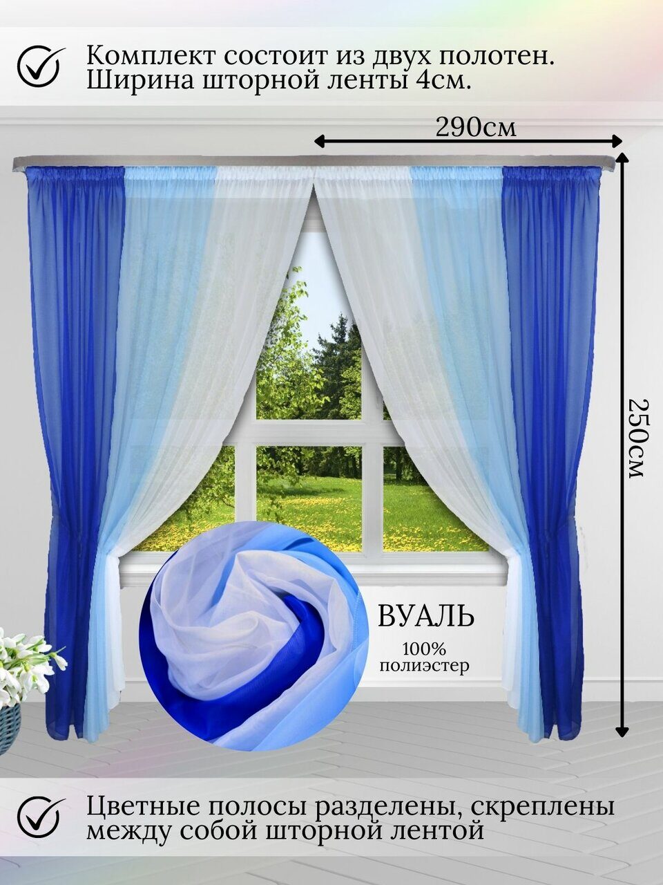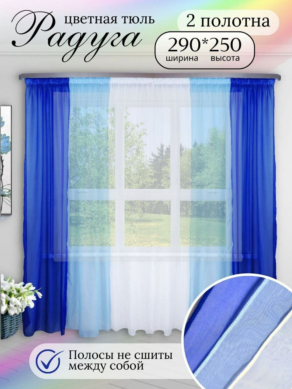 Шторы для комнаты комплект тюль вуаль "Радуга" синий/голубой