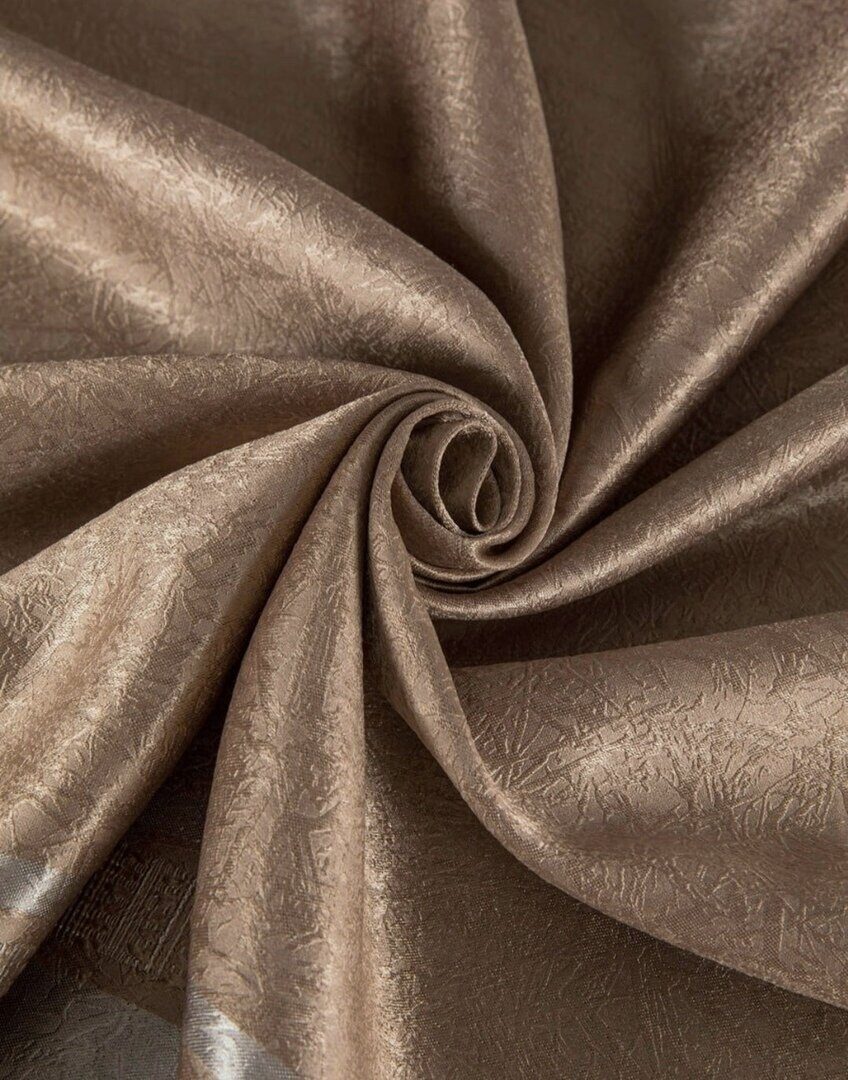 Комплект штор "Саманта" изготовлен из портьерной ткани блэкаут, не пропускающей солнечные лучи (светонепроницаемость 80%). Портьера долговечна, износостойка, не мнется, устойчива к загрязнению и выцветанию, приятна на ощупь и красиво драпируется.