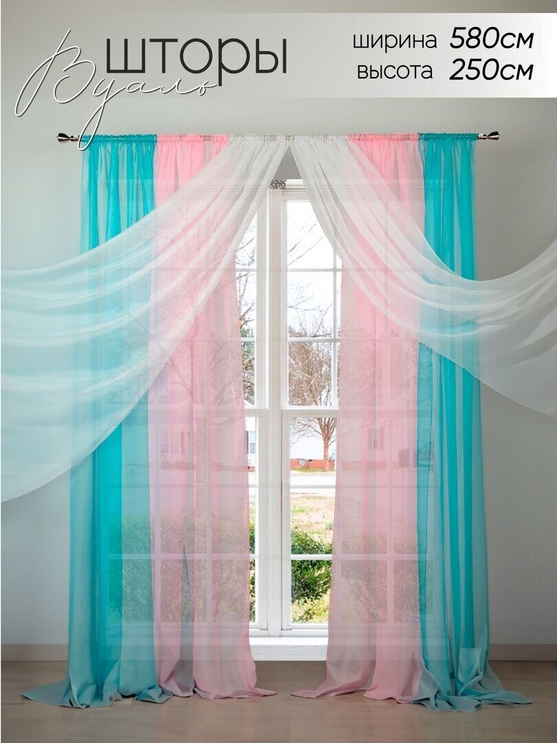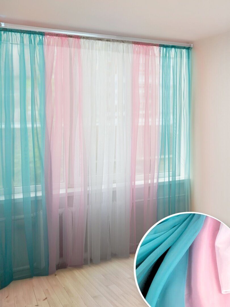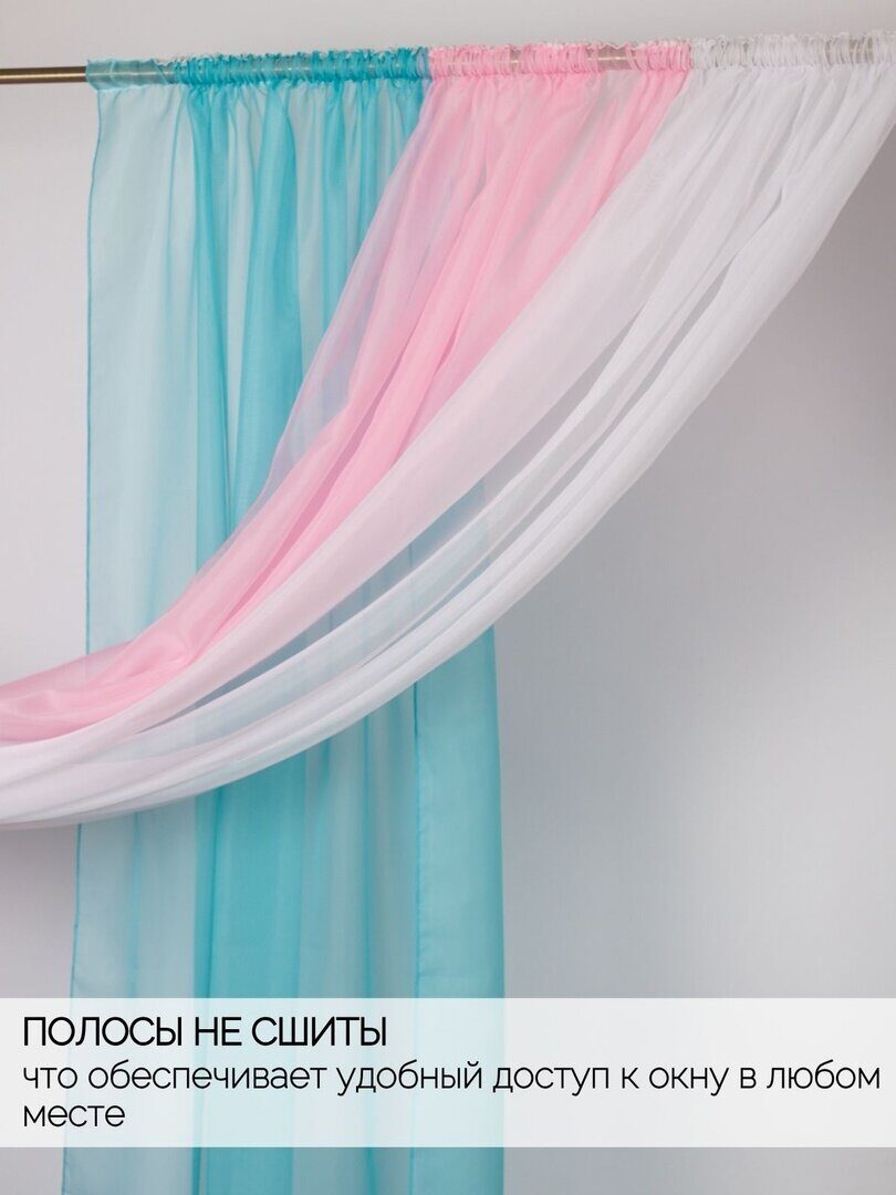 Комплект штор "Радуга" бирюзовый/розовый/белый 580*250