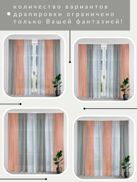 Цветная тюль – прекрасный выбор, чтобы создать уютную атмосферу в квартире, на балконе или на даче. Выполнены из легкой красивой вуали разных оттенков. Комплект состоит из шести разноцветных полос, которые не скреплены между собой. Благодаря такой конструкции доступ к окну становится простым и удобным, а стягивая тесьму до нужной длины легко получить нужный размер штор. Стоит отметить, что тонкая тюлевая вуаль прекрасно рассеивает солнечный свет. Высота 250 см оптимальна не только для кухонных или дачных помещений, но и для веранды. Комбинированная расцветка хорошо смотрится в детской. Универсальный дизайн подходит подросткам и детям: как мальчикам, так и девочкам. Декоративные занавески отлично впишутся в интерьер кухни, гостиной или спальни и являются отличным вариантом, чтобы освежить оформление вашего дома!