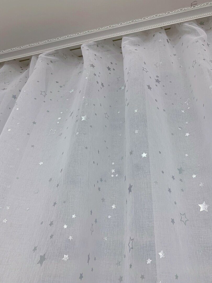 Тюль смотрится эффектно, как самостоятельная легкая штора, так и в комплекте с более плотными шторами. Прекрасно впишется, как в детскую комнату, так и в спальню, и гостиную!