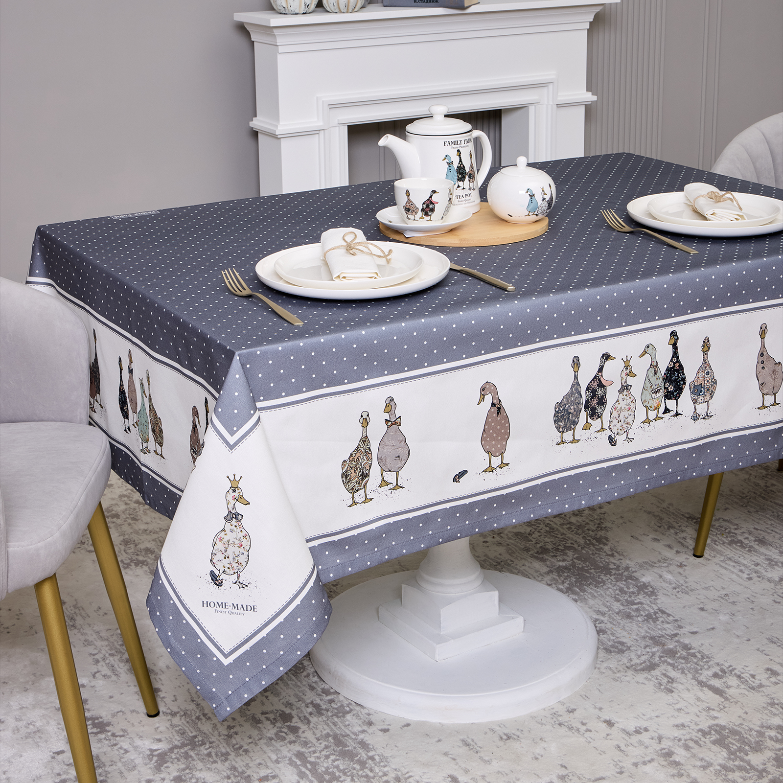 Особым направлением бренда «SANTALINO» , является изготовление столового белья ( скатерти , салфетки, дорожки (раннер), плейсметы, полотенца, фартуки) , по эксклюзивным дизайнам наших художников, воплощённых в цифровой печати, на современном оборудовании. Для пошива изделий используются только натуральные материалы 100% хлопок , плотность ткани составляет 190 гр\м2, она имеет приятную структуру в мелкий рубчик и называется твил, отличается хорошей капелярностью (впитываемость влаги), драпируемостью, износостойкостью, ткань проходит процесс каландрирования, что делает её более плотной и придаёт лёгкий атласный блеск, предотвращает образование так называемых «катышек» т.е уменьшается пилингуемость ткани. Цифровая печать позволяет перенести на изделия не только всё богатство красок и оттенков, но и придать особую прочность крашению, ткань не теряет своей яркости даже после 100 стирок. Изделия легки и не прихотливы в уходе, стирать нужно при температуре 40С , гладить при темпенратуре от 110-170С с отпариванием, но нельзя подвергать хлорному отбеливанию .Для удобства эксплуотации на ряд изделий, такие как фартуки , скатерти, дорожки, может наноситься водогрязеотталкивающая пропитка которая не влияет на внешний вид изделия, но позволяет избежать сильного загрязнения при использовании.