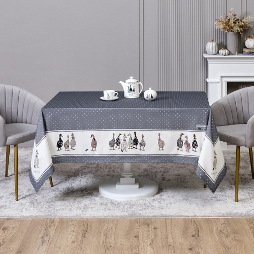 СКАТЕРТЬ "FAMILY FARM" 160Х220СМ ,СИНИЙ, 100% ХЛОПОК,ТВИЛ ПРОПИТКА