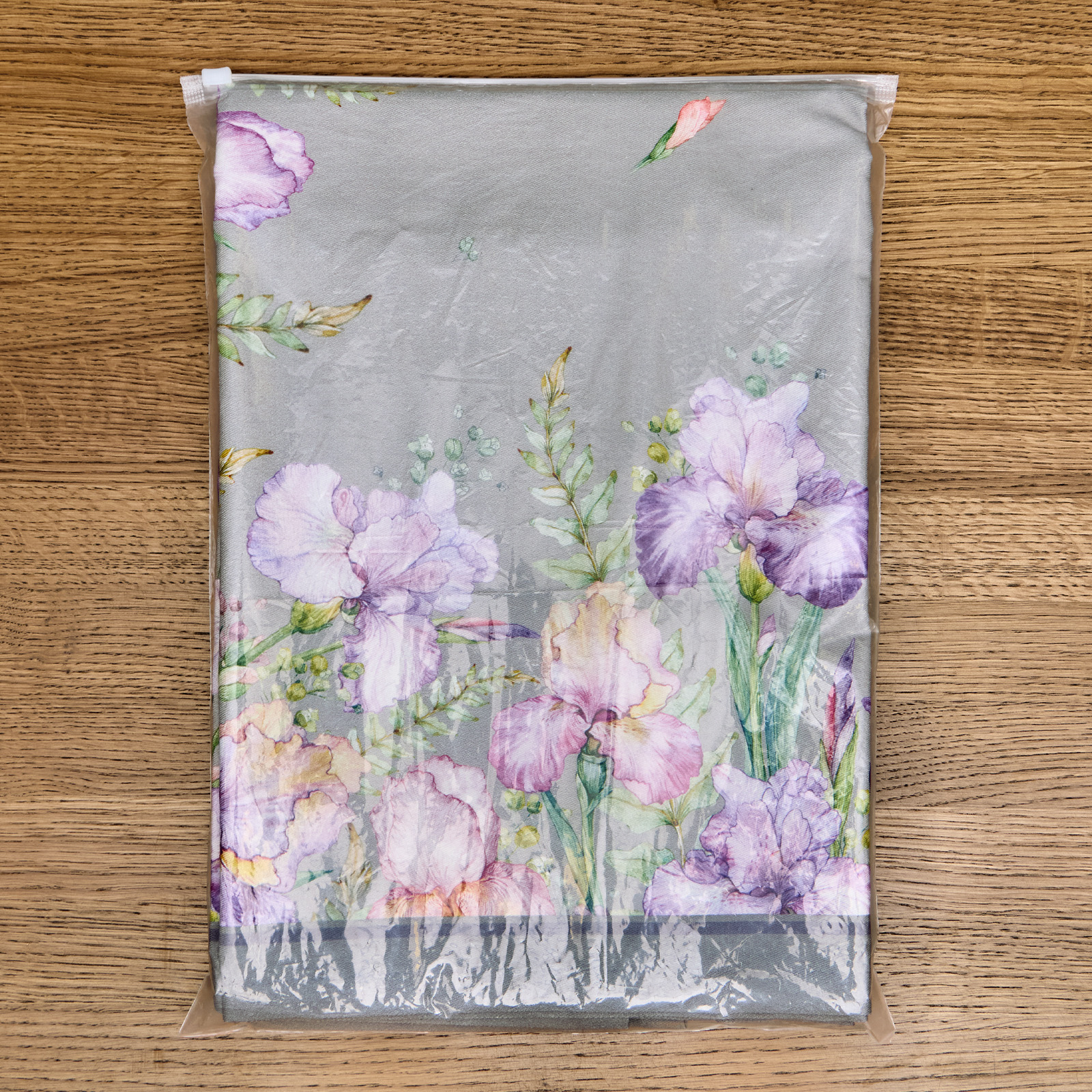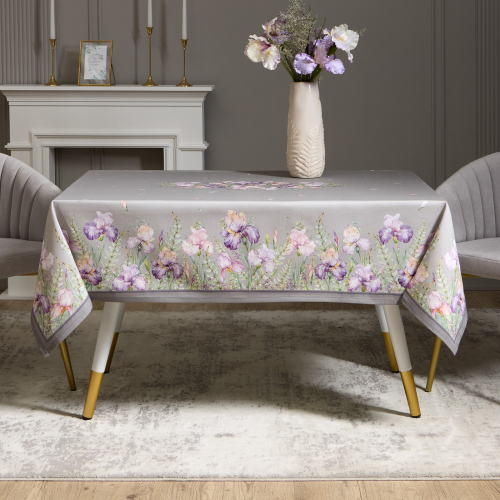 СКАТЕРТЬ "ИРИСЫ" 140Х180СМ ,СЕРЫЙ, 100% ХЛОПОК,ТВИЛ ПРОПИТКА