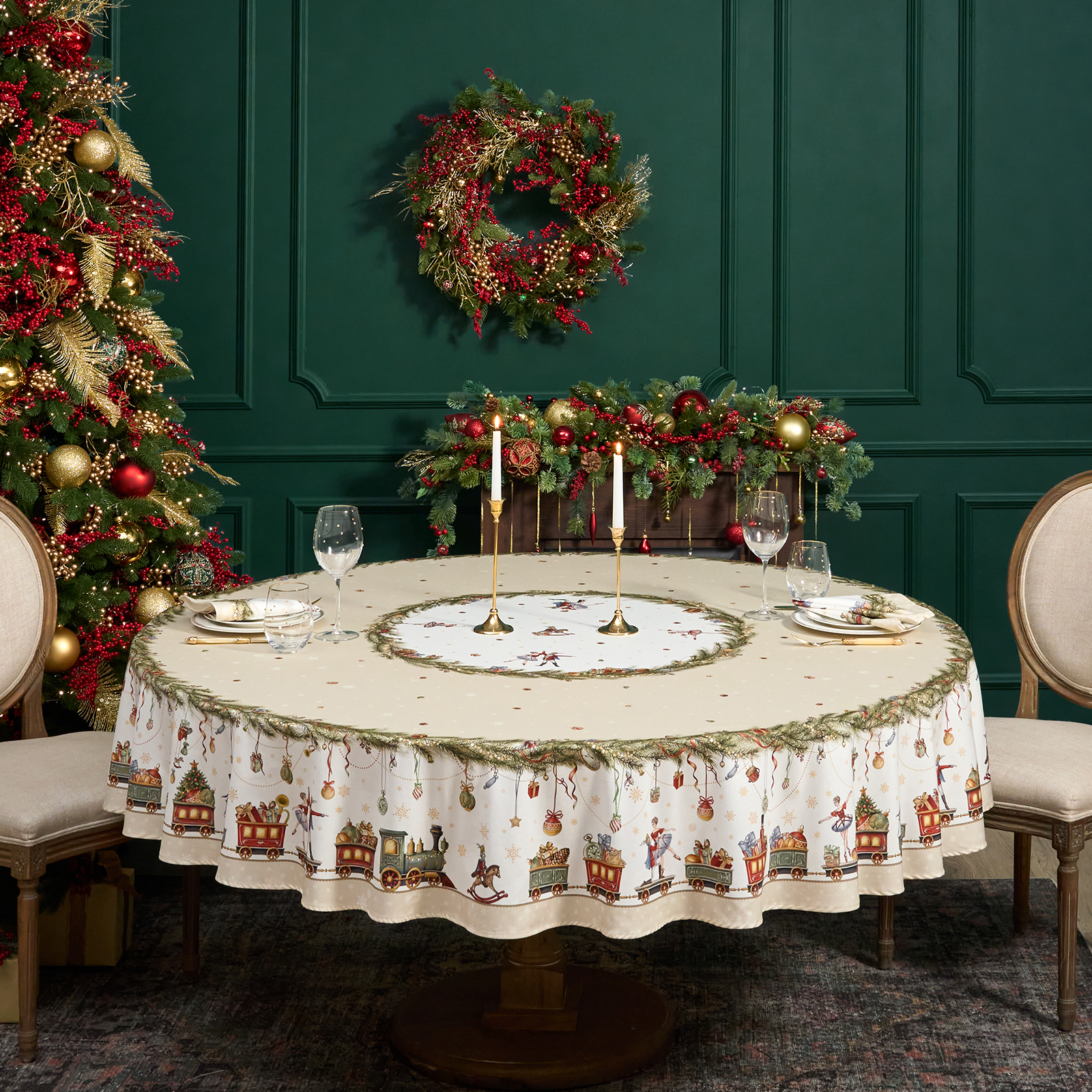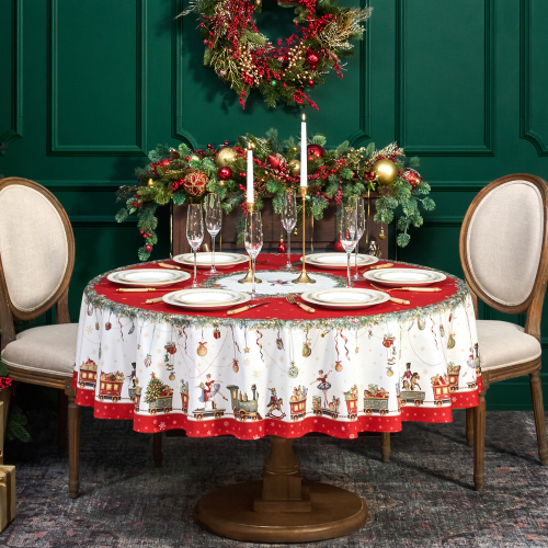 СКАТЕРТЬ КРУГЛАЯ "ЩЕЛКУНЧИК" ,220СМ БЕЖЕВЫЙ 100% ХЛОПОК , ТВИЛ