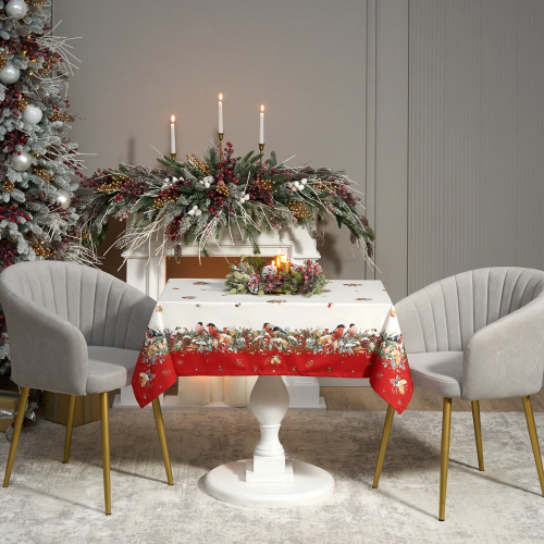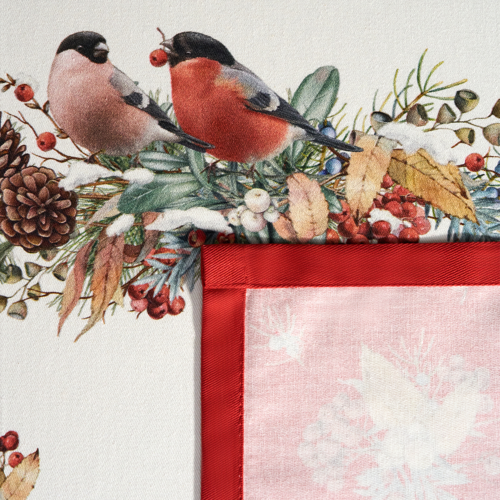 СКАТЕРТЬ "МОРОЗКО.СНЕГИРИ" 110Х140СМ ,КРАСНЫЙ, 100% ХЛОПОК,ТВИЛ ПРОПИТКА