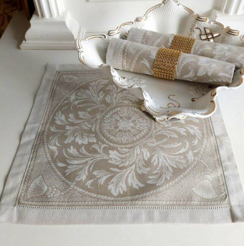 Комплект салфеток "Овальная"-бежев. с ажуром 6 шт. 45*45 см. п/лен