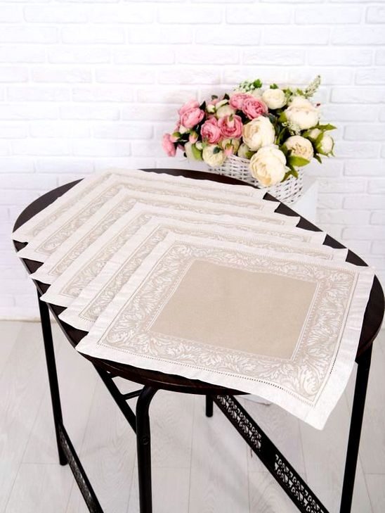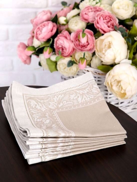 Льняная салфетка бежевого цвета будет отлично сочетаться со скатертью любого тона, а также может использоваться самостоятельно – в роли подстановочной салфетки. На льняном основании будет выгодно смотреться любая сервировка. Купив такие салфетки, вы оцените высокое качество и прочность льна, а также его способность хорошо отстирываться от любых загрязнений.