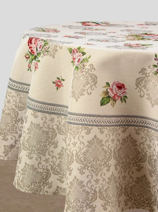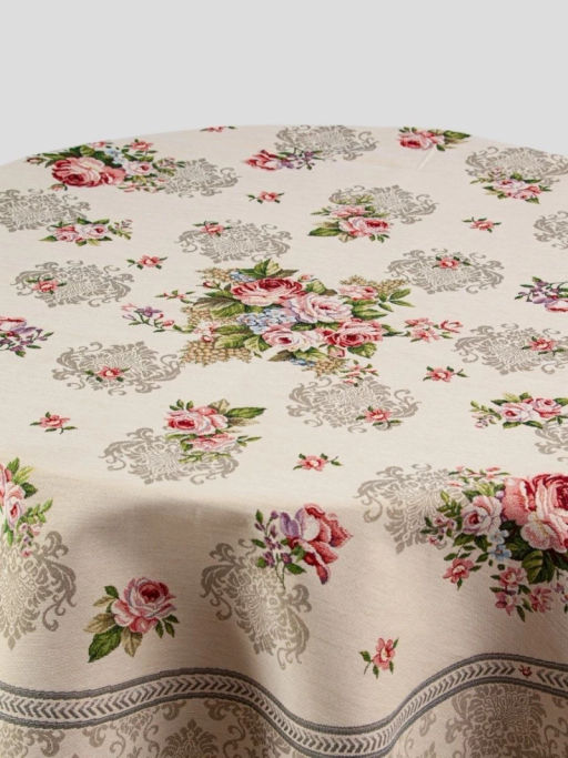 Розы Дамаск бежевый фон Скатерть круг д165 см 2102507