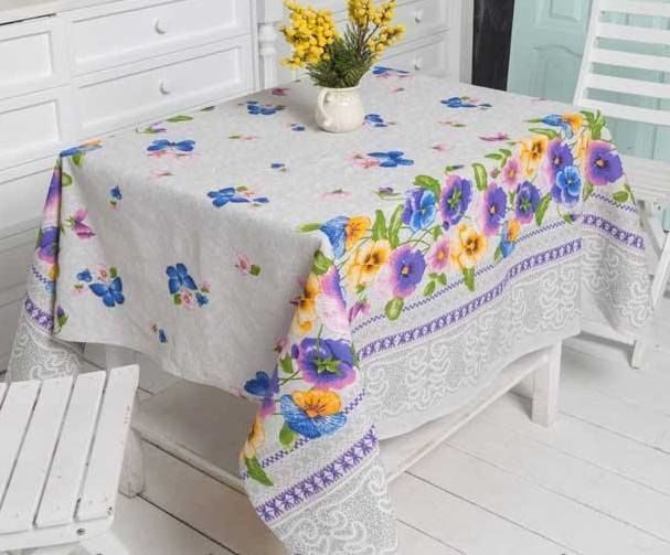 Скатерть "Анютины глазки" 150*180см. рогожка хлопок 100%