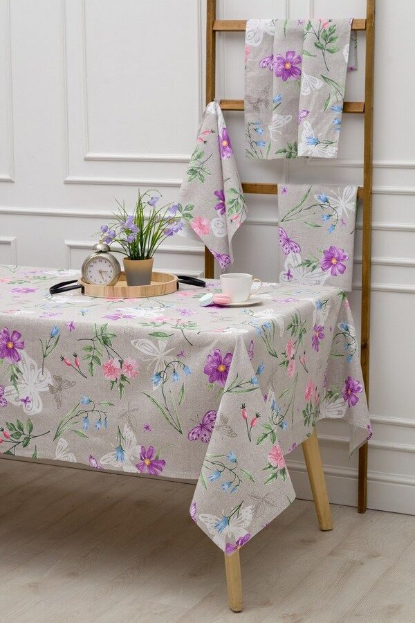 Скатерть "Бабочки и цветы" 150*180см. рогожка хлопок 100%