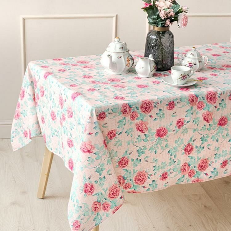 Льняная набивная скатерть Плетистая роза станет прекрасным украшением Вашего интерьера. Цветочный дизайн и отличное качество будут радовать Вас и Ваших близких долгое время.Скатерть изо льна гигроскопична, быстро впитывает влагу, но в тоже время быстро высыхает. Лен устойчив к загрязнениям, выносит большое количество стирок.