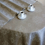 Льняная жаккардовая скатерть Магнолия-п/вар. станет прекрасным украшением Вашего стола, скатерть смотрится торжественно и очень нарядно.Скатерть изо льна гигроскопична, быстро впитывает влагу, но в тоже время быстро высыхает. Лен устойчив к загрязнениям, выносит большое количество стирок.