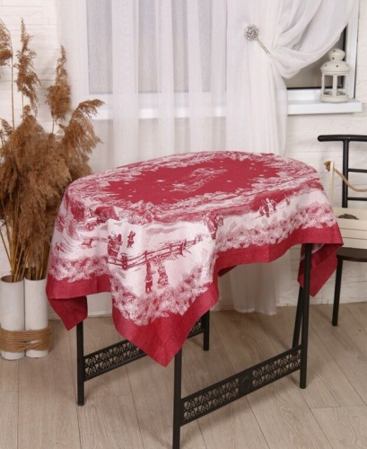 Скатерть Премиум "Русская зима"-бордо 100*150 см. п/лен
