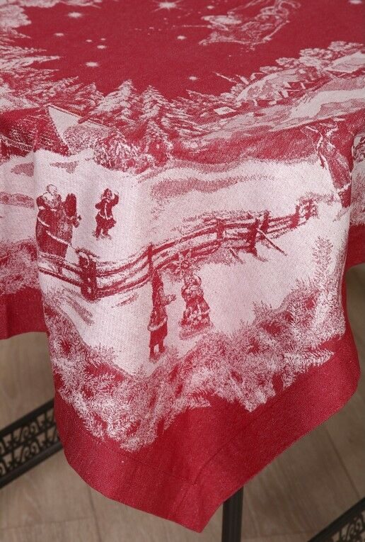 Скатерть прямоугольная жаккардовая с вытачным углом "Русская зима"-бордо