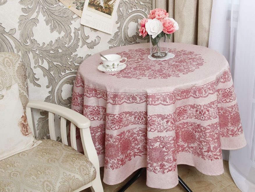 Скатерть круглая жаккардовая с ажуром "Восточный мотив"-бордо