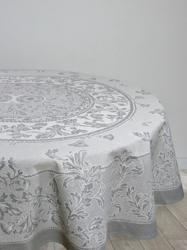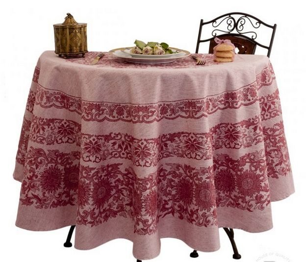 Скатерть Премиум круглая "Восточный мотив"-бордо D 178 см. п/лен