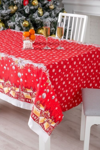 Скатерть "Снегири и рябина" 150*150см. рогожка хлопок 100%