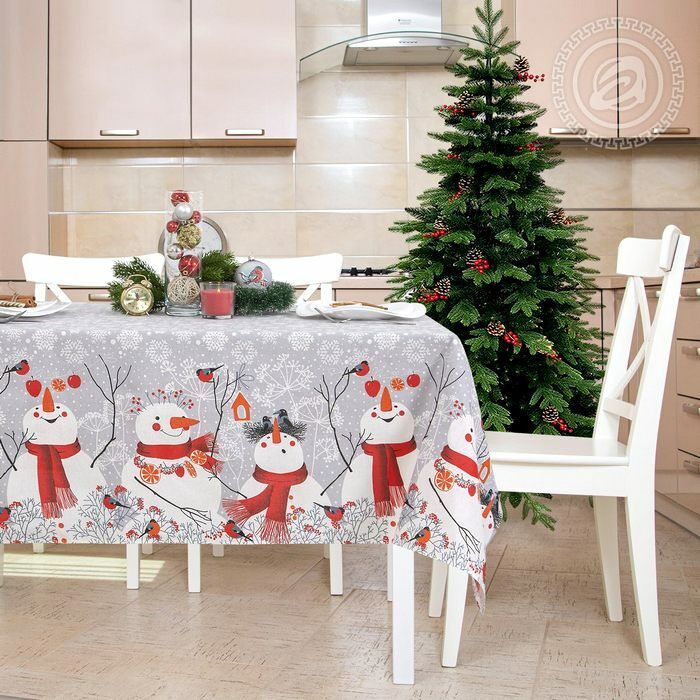 Скатерть "Снеговики" 150*150см. рогожка хлопок 100%