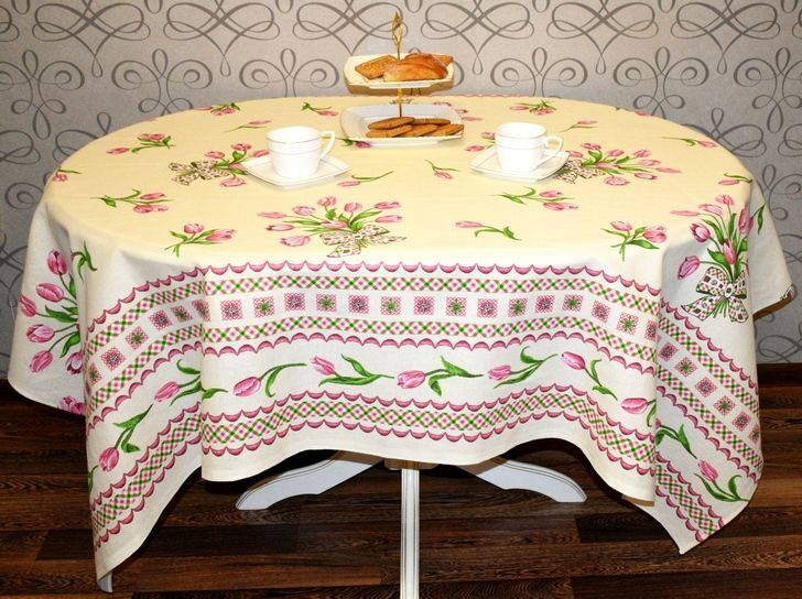 Скатерть "Тюльпаны" 150*150см. рогожка хлопок 100%