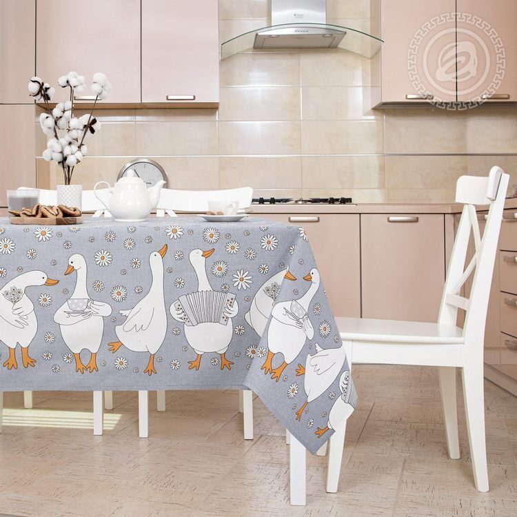 Скатерть "Веселые гуси" 150*220см. рогожка хлопок 100%