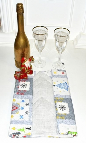 Столовый набор "Снегири":скатерть 150*250 см.+12 салф. рогожка
