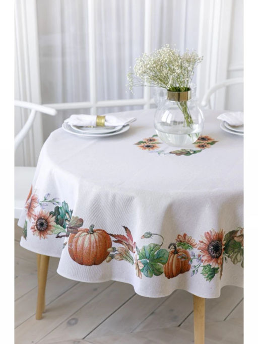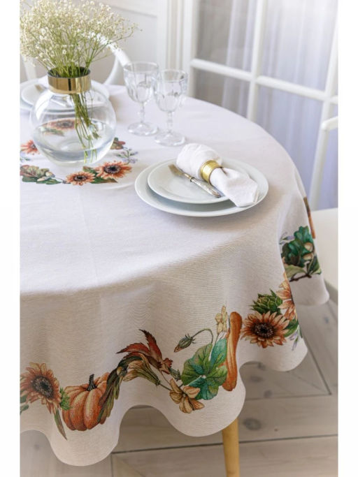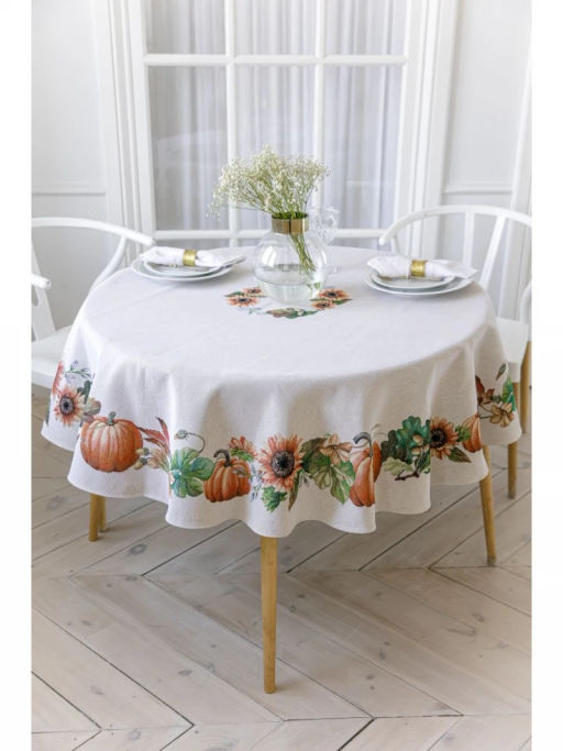 Тыквы и подсолнухи Скатерть круг д165 см 07856