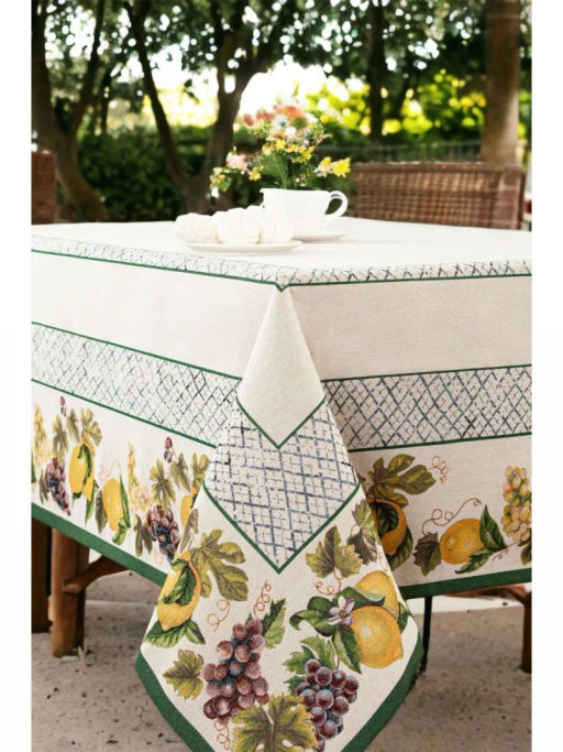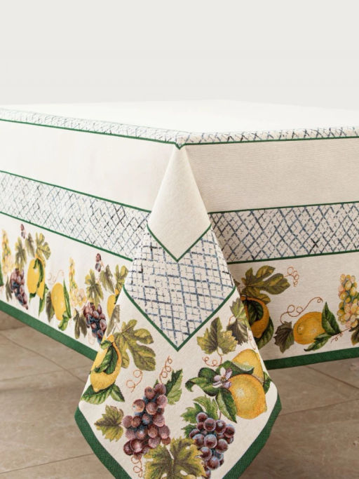 Жюра Виноград и лимоны зеленый бордюр Скатерть 165х300 см 2107930