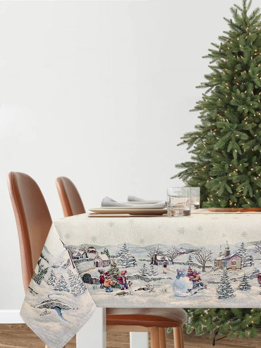 Гномы лыжники Скатерть 140х260 см 2310659 шенилл серебро