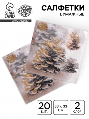 Салфетки новогодние бумажные «Шишки», 33×33 см, набор 20 шт.