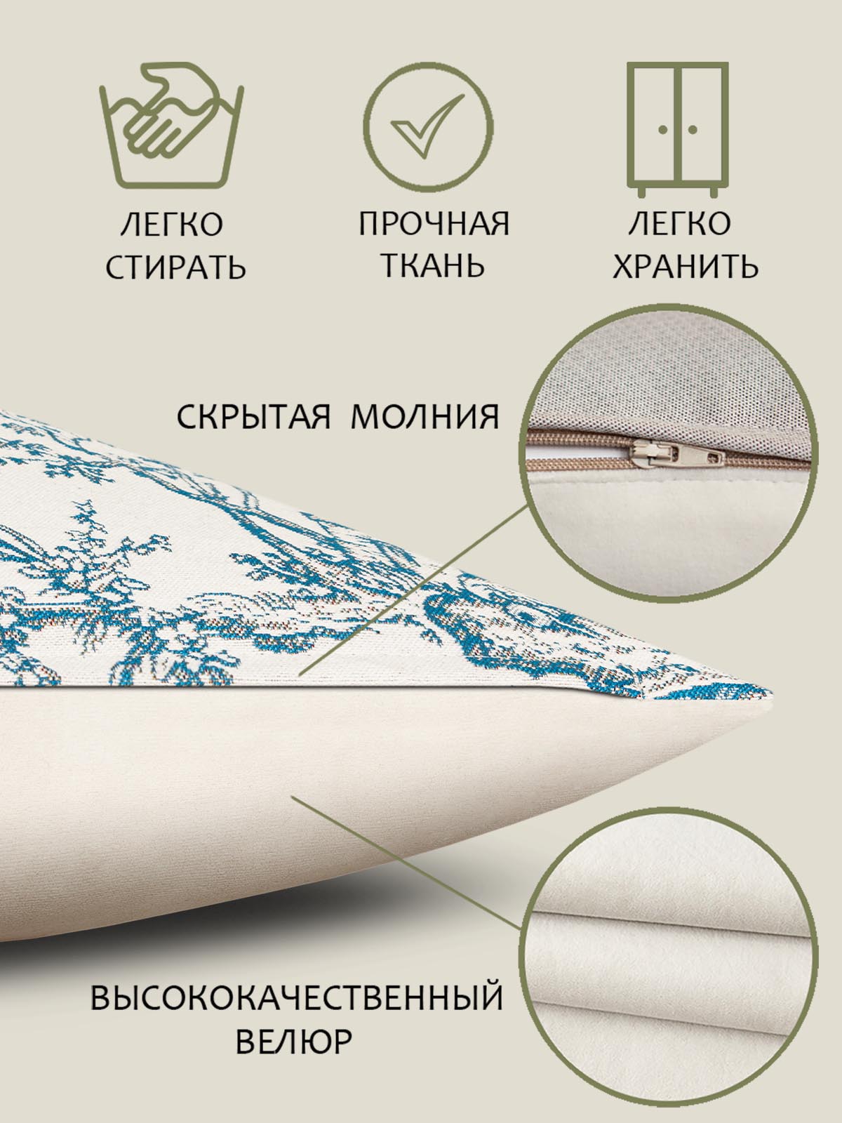 Рисунок создается переплетением нитей различных цветов и фактуры. Состав ткани: хлопок ( дающий фактуру и приятную тактильность ) и синтетические нити ( придающие износостойкость ). Плотность гобелена 410 г на кв.метр.