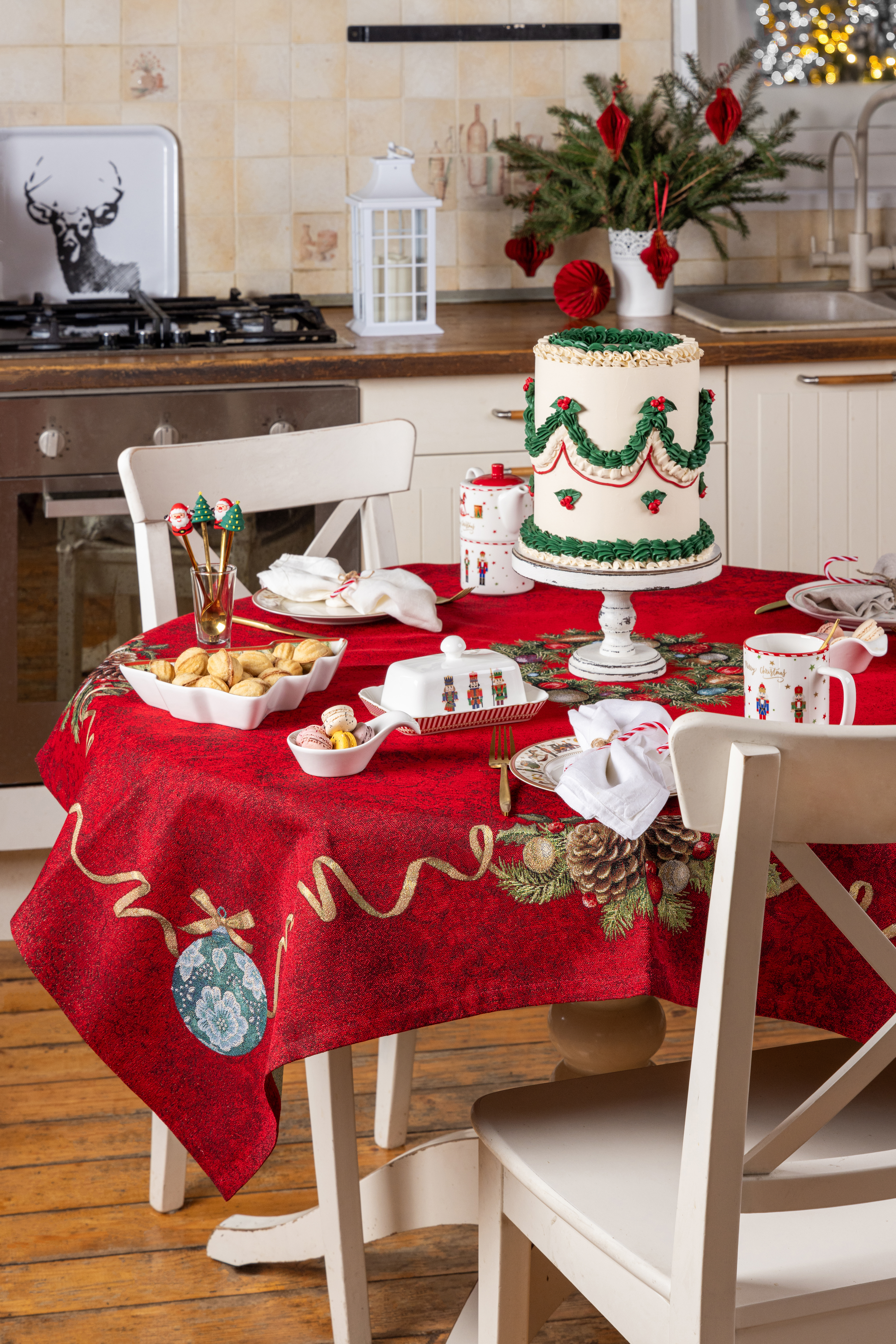 Венок из нобилиса красный фон Скатерть 140х240 см 2106793 золото