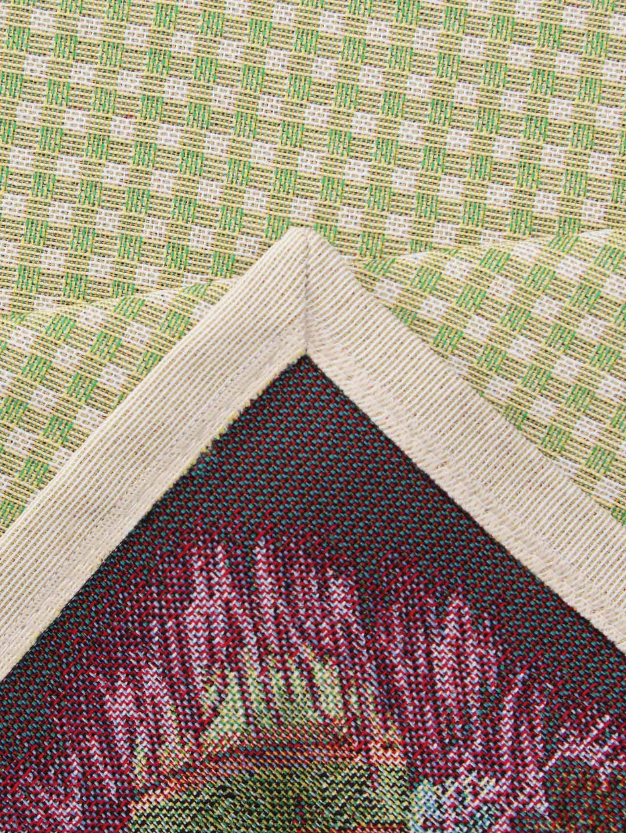 Рисунок создается переплетением нитей различных цветов и фактуры. Состав ткани: хлопок ( дающий фактуру и приятную тактильность ) и синтетические нити ( придающие износостойкость ). Плотность гобелена 410 г на кв.метр.