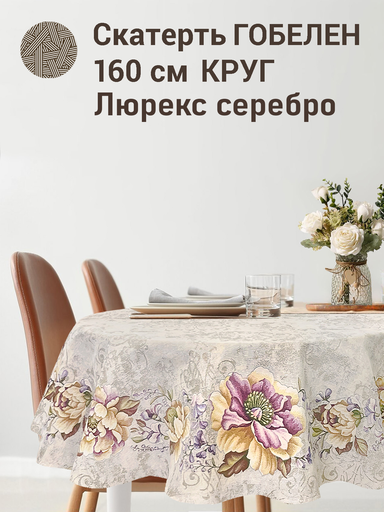 Желтый пион Скатерть круг д160 см серебро 2518898 New