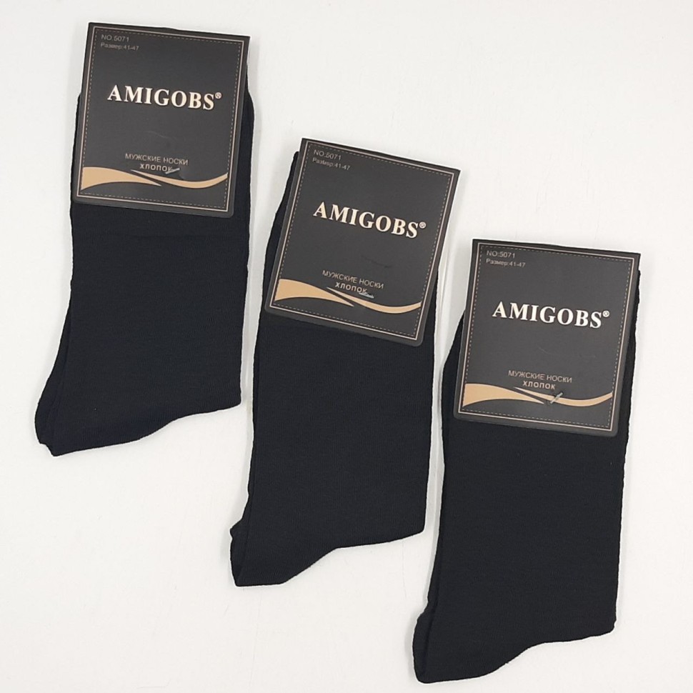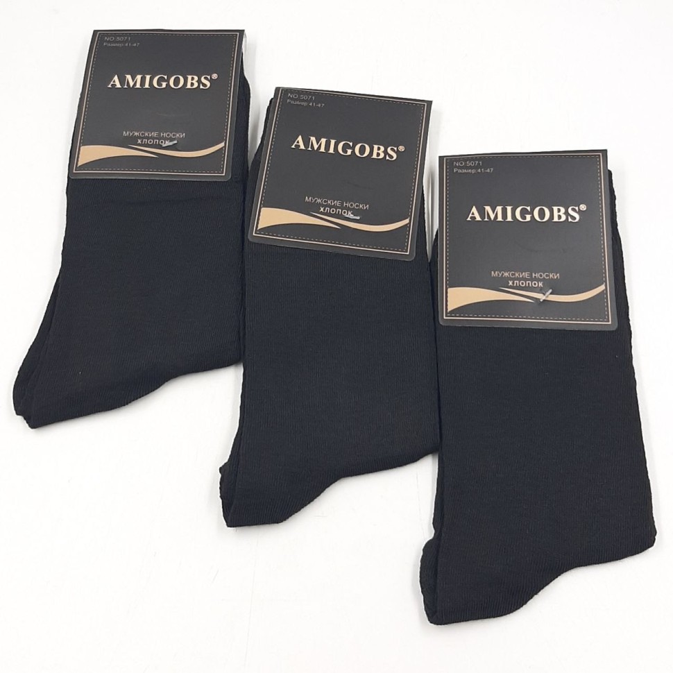 10 пар//AMIGOBS Носки мужские Высокие Хлопок Классика (черные) (41-47) (5071) К10