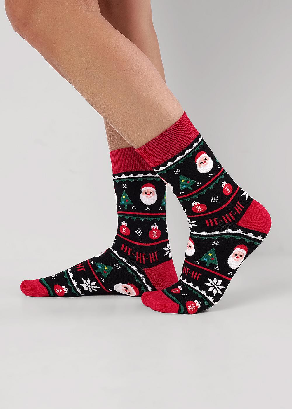 теплые плюшевые новогодние носки со скандинавским орнаментом и рисунком дед мороза